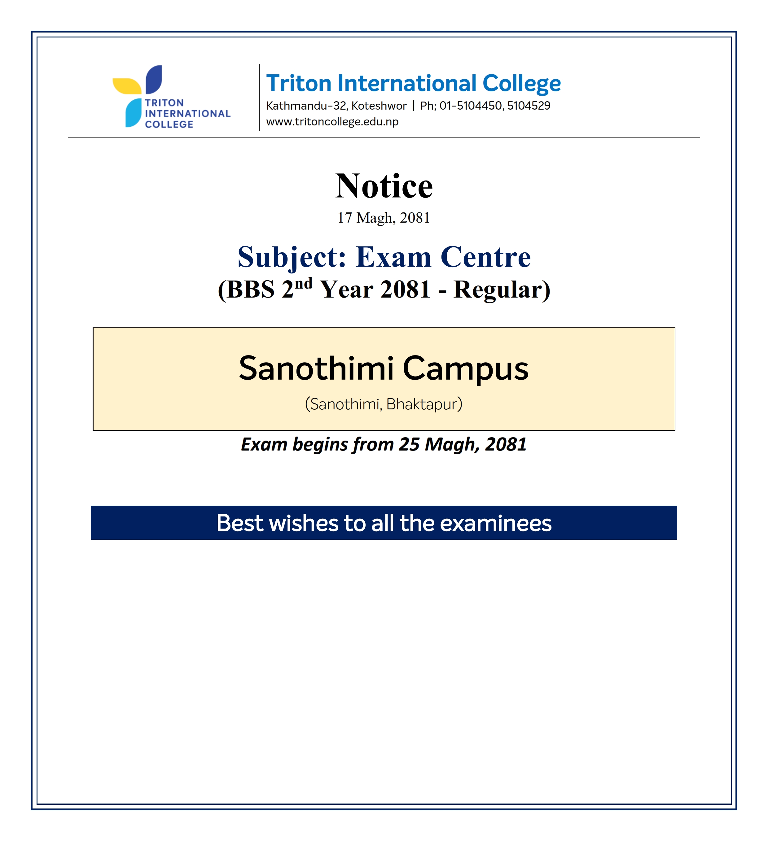 BA-BBS (3Years) 3rd Year Chance Exam Centre 2082-10-22