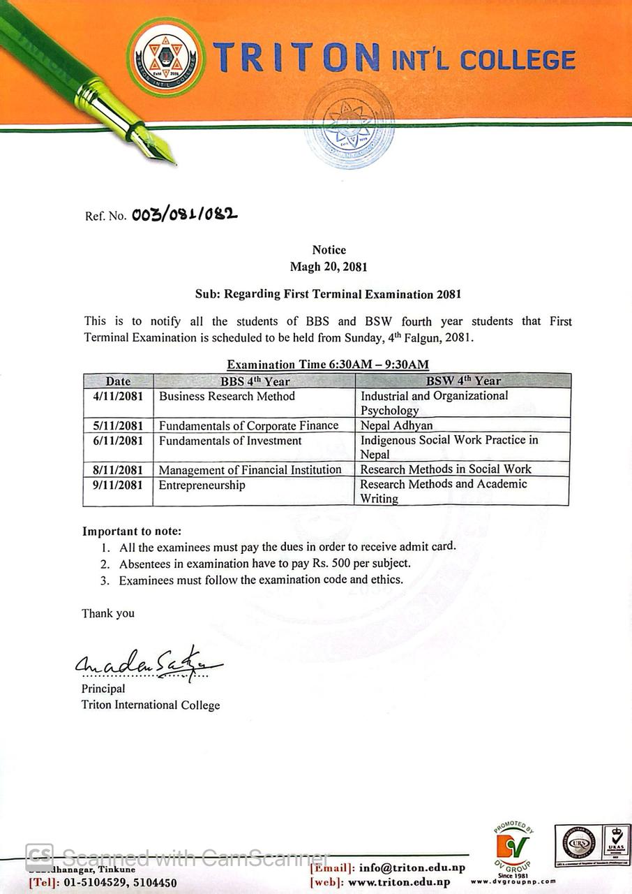 BBS & BSW 4th Year First Term Exam Schedule 2081-10