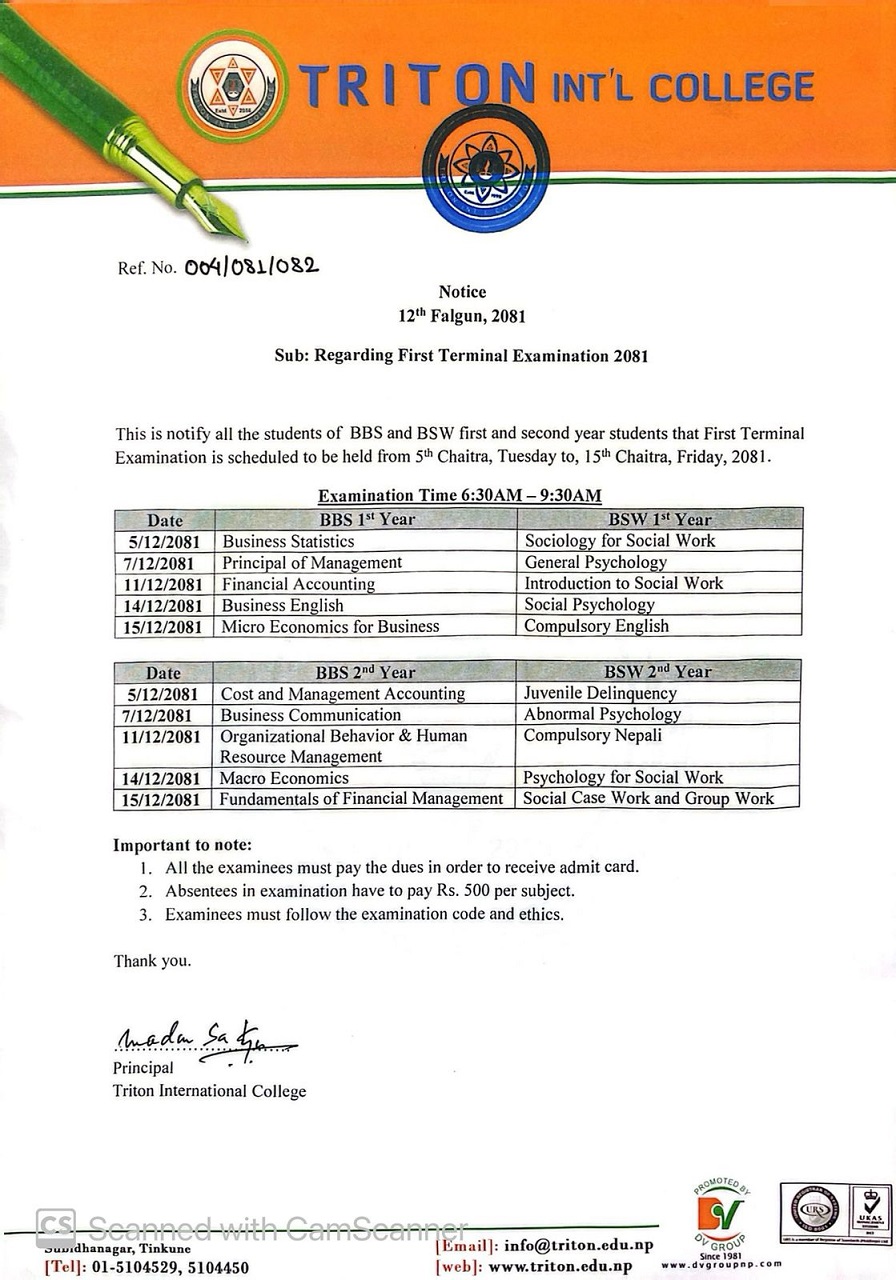 BBS&BA 2nd Yr Exam Routine Revised 2082-08