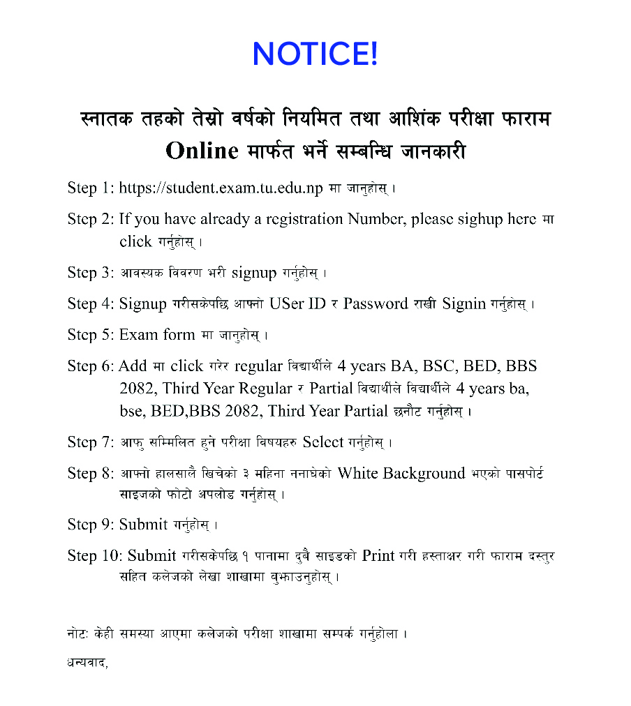 BBS&BA 3rd Yr Board Exam Form Fillup 2082-08